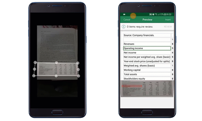 โดยวิธีการใช้งานฟีเจอร์นี้ก็ง่ายตามชื่อเลย เพียงแค่ถ่ายรูปตารางด้วยกล้องมือถือ ลากเส้นกำหนดพื้นที่ตารางที่ต้องการ จากนั้น Excel จะใช้พลัง OCR แปลงภาพถ่ายเป็นตารางให้โดยอัตโนมัติ และจะเปิดให้ใช้ฟีเจอร์ดังกล่าวแบบฟรีในเร็ว ๆ นี้สำหรับผู้ใช้ Office 365 ในระบบปฏิบัติการ Android ก่อน